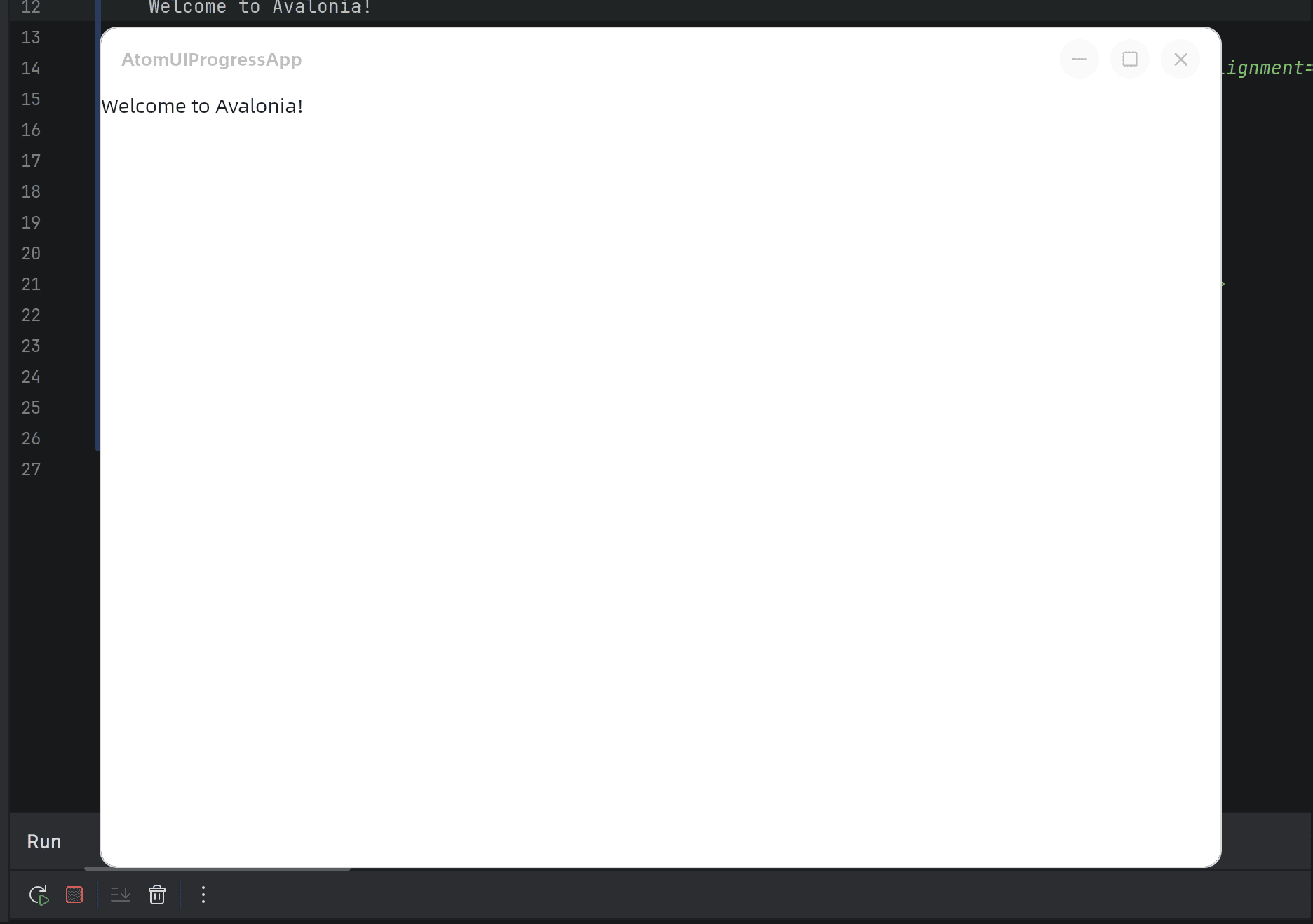 点击运行,rider 会进行编译,成功之后您就能看到应用的默认窗体了